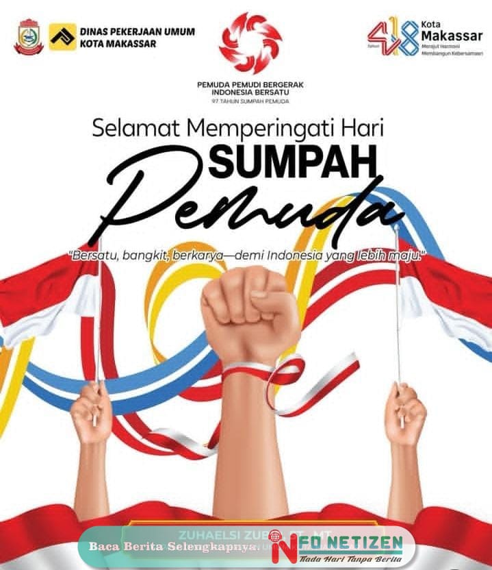 Makassar, Infonetizen.com — Dalam rangka memperingati Hari Sumpah Pemuda ke-97, Dinas Pekerjaan Umum (PU) Kota Makassar mengajak seluruh generasi muda untuk terus meneguhkan semangat persatuan dan nasionalisme di tengah keberagaman bangsa.