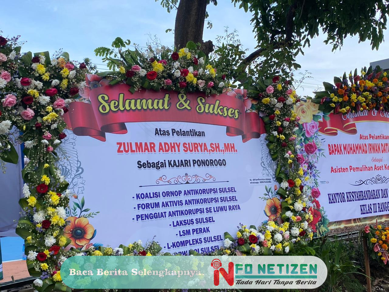 Ucapan selamat tersebut disampaikan melalui karangan bunga yang terpajang di Depan Kantor Kejaksaan Tinggi Jawa Timur dan Kantor Kejari Ponorogo, Rabu (6/11/25).