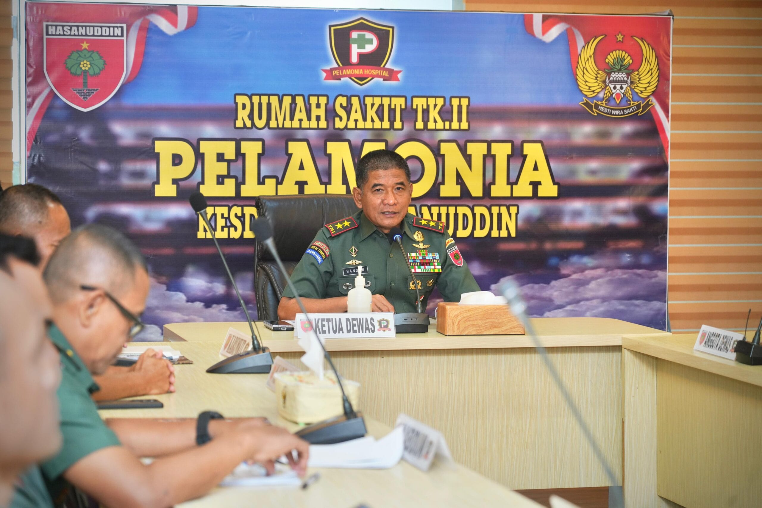 Dalam arahannya, Pangdam menegaskan bahwa rapat ini untuk membahas hasil pengawasan terhadap pelaksanaan BLU RS. Pelamonia selama Semester II TA. 2025 sebagai wujud pertanggungjawaban Dewas dalam menjalankan perannya sebagai governing body, khususnya dalam melaksanakan fungsi pembinaan serta pengawasan teknis internal rumah sakit. Selain itu, forum ini dimanfaatkan untuk merumuskan rekomendasi strategis bagi pengelola BLU serta sebagai bahan laporan kepada komando atas dalam rangka peningkatan mutu pelayanan kepada prajurit dan masyarakat.