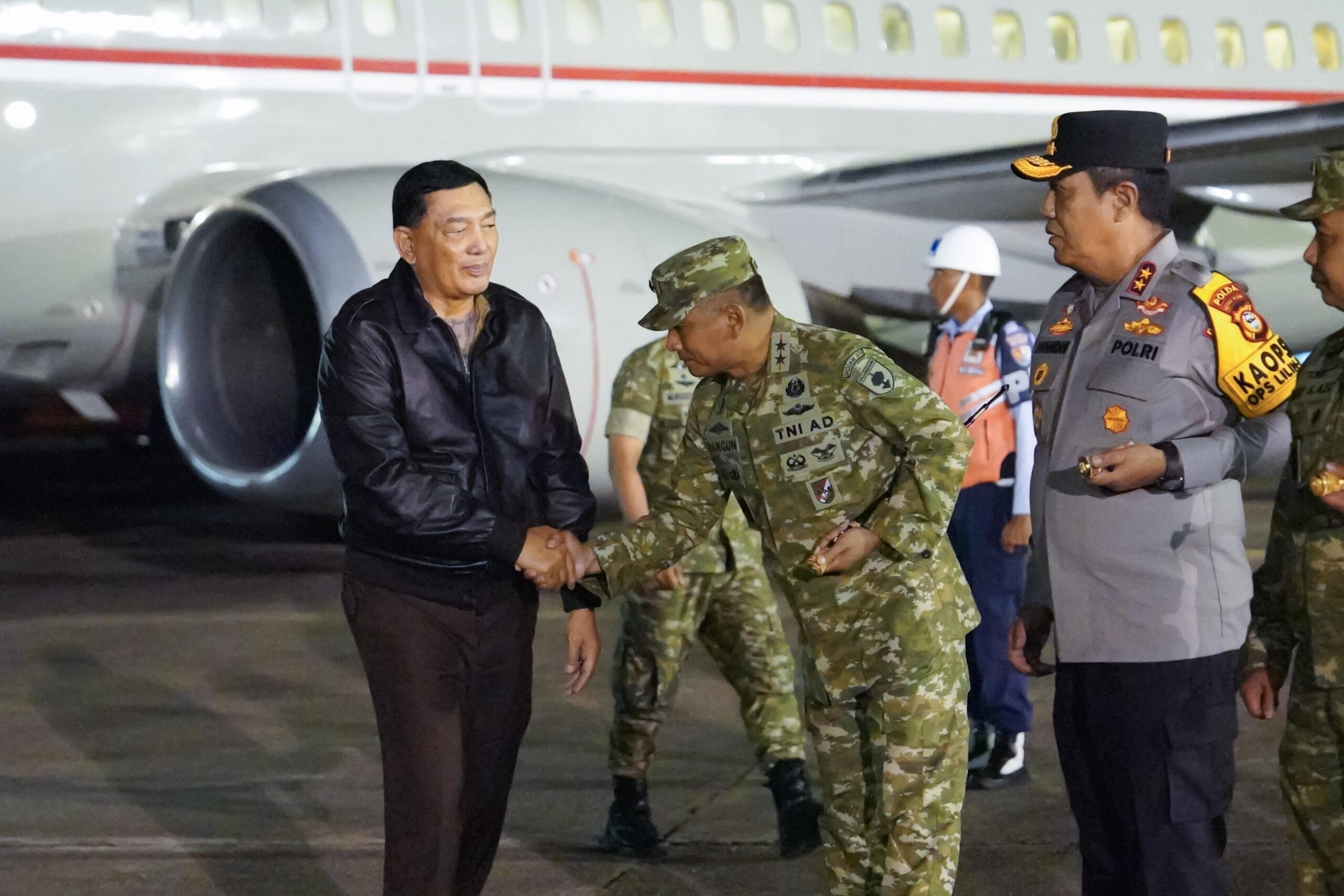 infonetizen.com // Maros – Pangdam XIV/Hasanuddin Mayjen TNI Bangun Nawoko menyambut kedatangan Menteri Pertahanan (Menhan) RI Jenderal TNI (Purn) Dr. Sjafrie Sjamsoeddin, M.B.A., bersama rombongan, bertempat di Base Ops Lanud Sultan Hasanuddin, Kab. Maros. Jumat, (2/01/2026).
