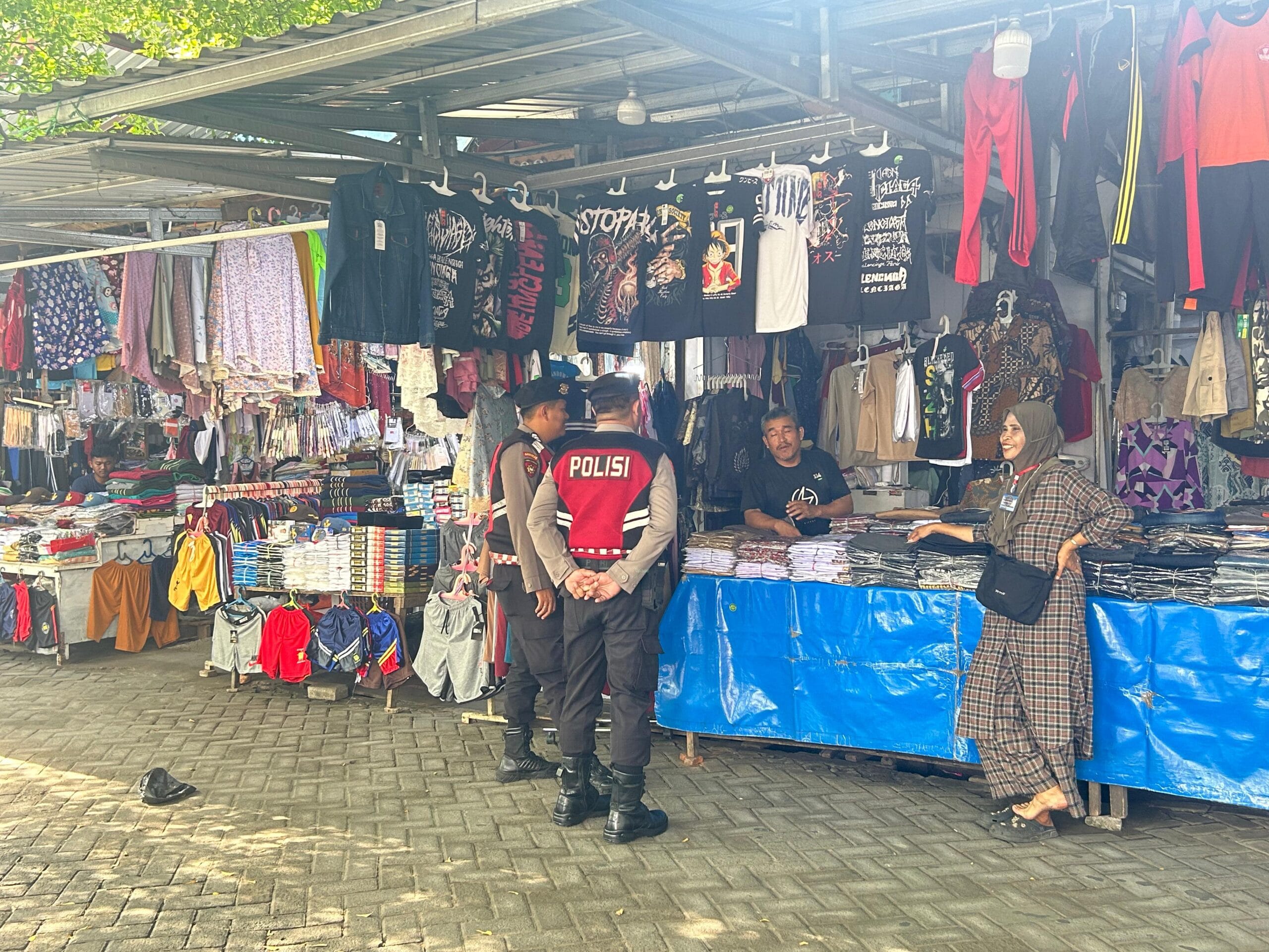 Personel Unit I Perintis Presisi Samapta tidak hanya melakukan pemantauan situasi keamanan, tetapi juga menyambangi para pedagang dan berdialog secara langsung.