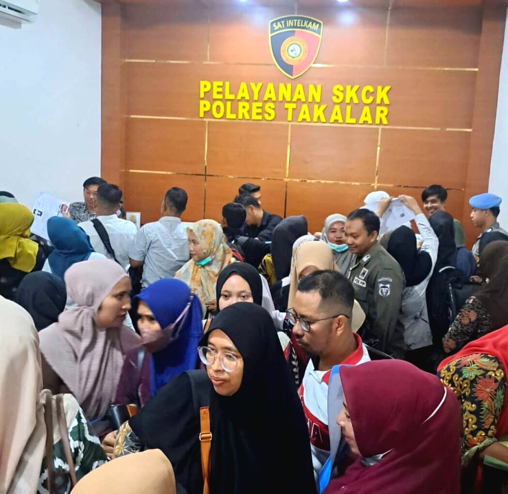 INFO NETIZEN // TAKALAR – Lonjakan masyarakat yang mengurus Surat Keterangan Catatan Kepolisian (SKCK) terjadi di Polres Takalar, pasca pengumuman Pemerintah Kabupaten Takalar terkait daftar non-aparatur sipil negara (non-ASN) yang lolos seleksi untuk diangkat menjadi pegawai pemerintah dengan perjanjian kerja (PPPK) paruh waktu.