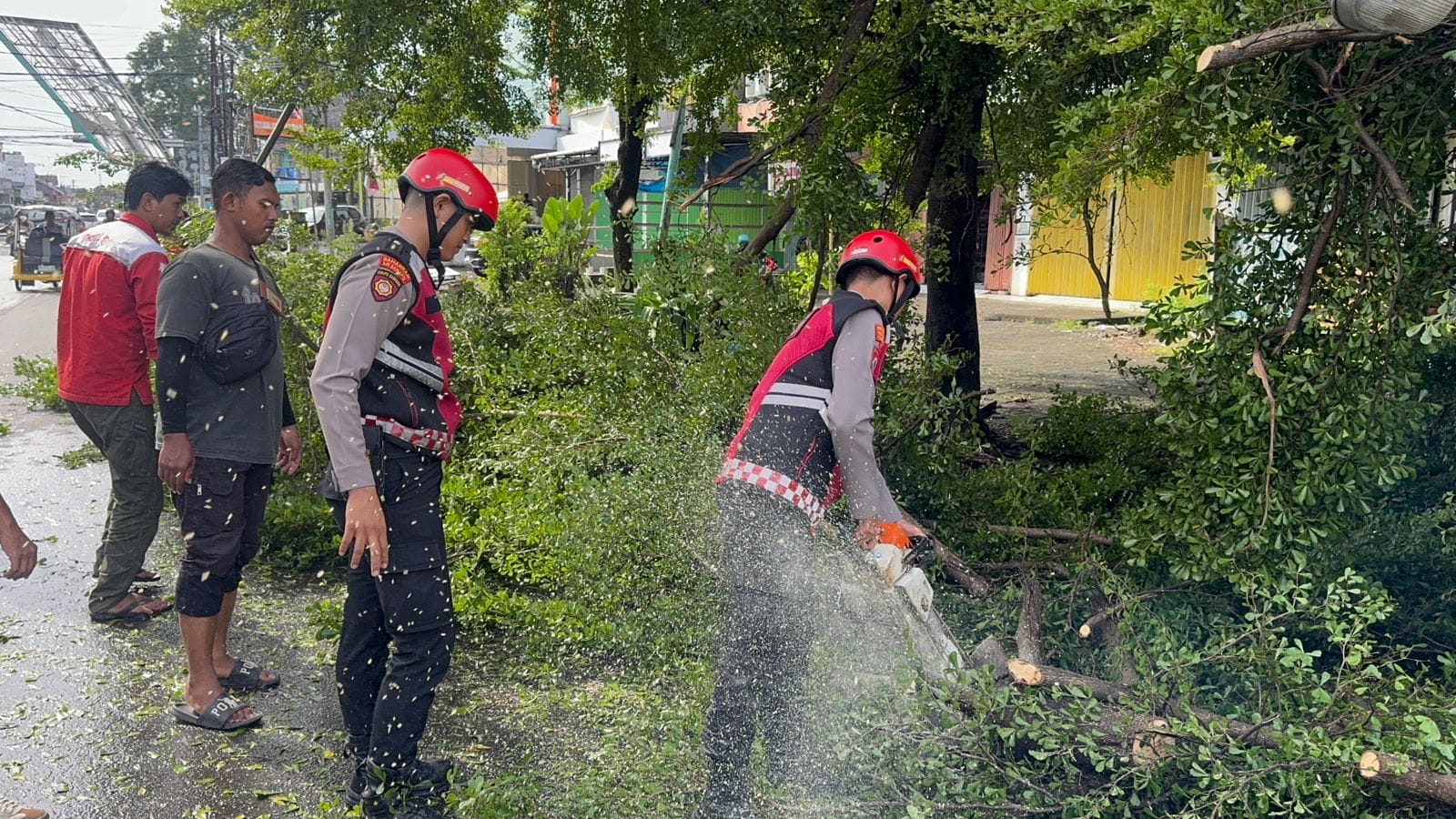 Peristiwa tersebut sempat menyebabkan kemacetan karena batang pohon melintang di badan jalan dan menghalangi kendaraan yang melintas. Mendapat laporan dari masyarakat, tim Perintis Presisi Samapta Polres Gowa segera menuju lokasi untuk melakukan penanganan.