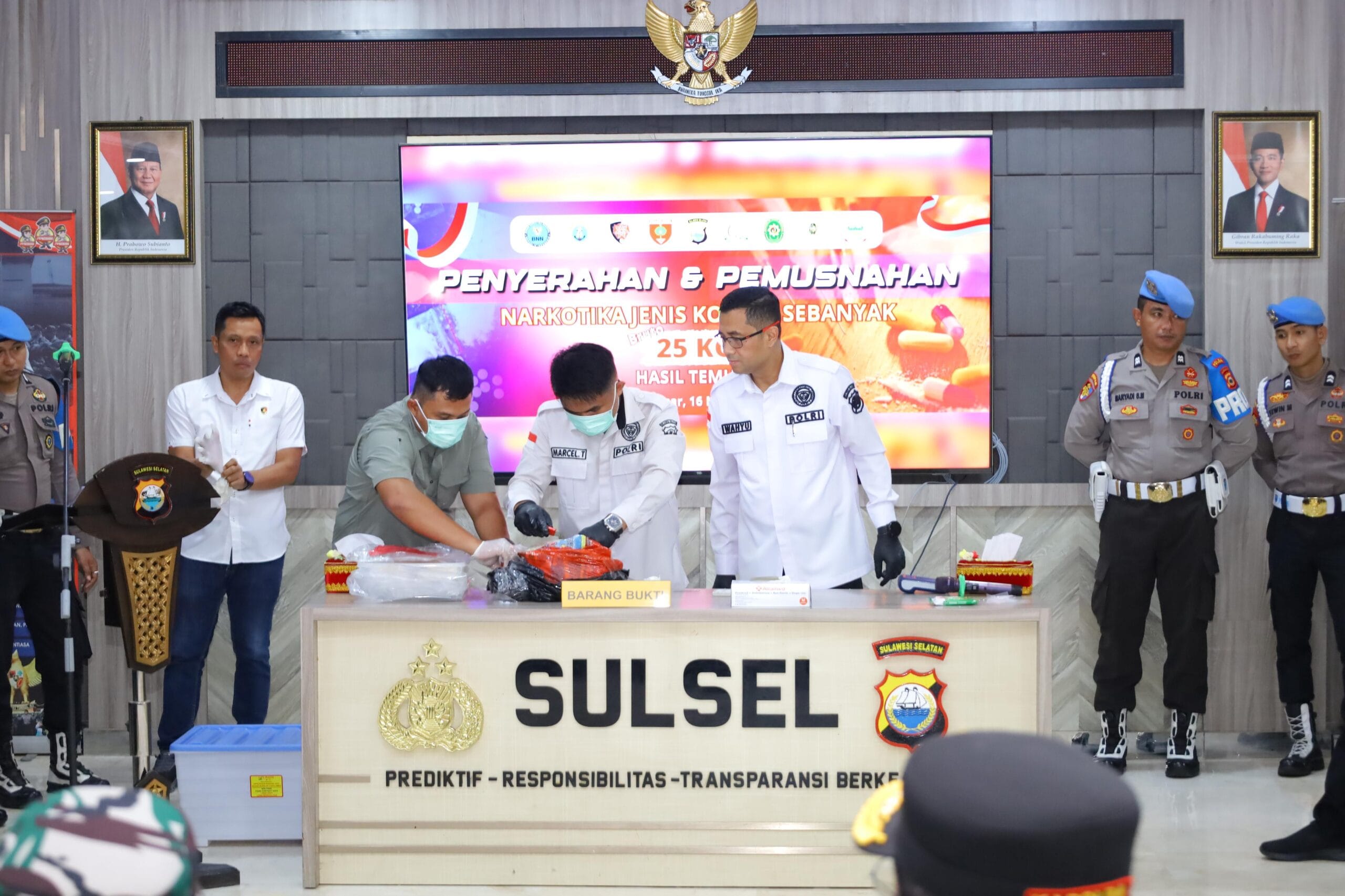 Infonetizen.com // Makassar, Kepolisian Daerah Sulawesi Selatan (Polda Sulsel) melaksanakan pemusnahan barang bukti narkotika jenis kokain dengan berat bruto 25 kilogram di Mapolda Sulsel, Senin (16/03/2026). Kegiatan ini merupakan tindak lanjut dari penyerahan barang temuan oleh Kodam XIV/Hasanuddin kepada Polda Sulsel untuk proses hukum lebih lanjut.