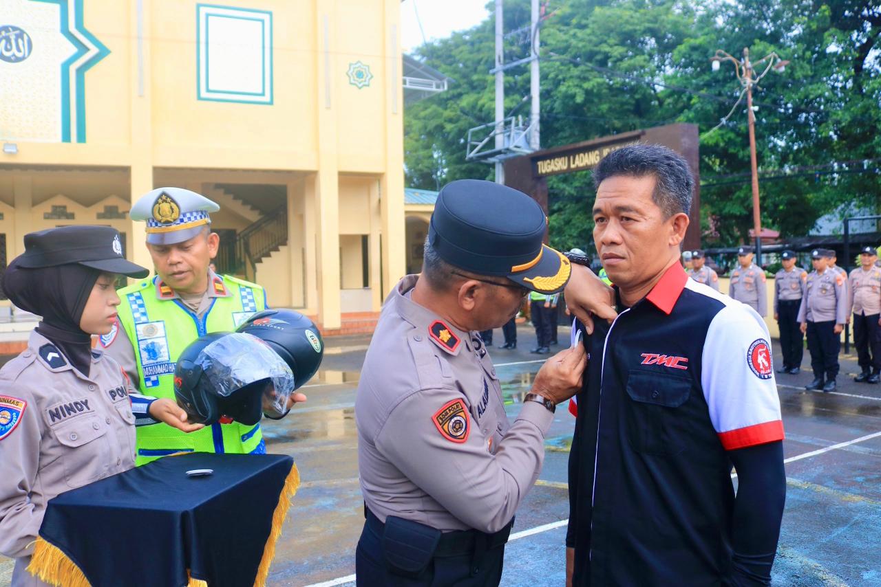 Kegiatan ditandai dengan pemasangan pin Ojol Kamtibmas oleh pimpinan apel sebagai bentuk simbolis pengukuhan peran pengemudi ojol dan komunitas motor sebagai mitra strategis kepolisian di lapangan.